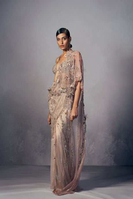 • Joyce Shimmer Tulle draped saree set