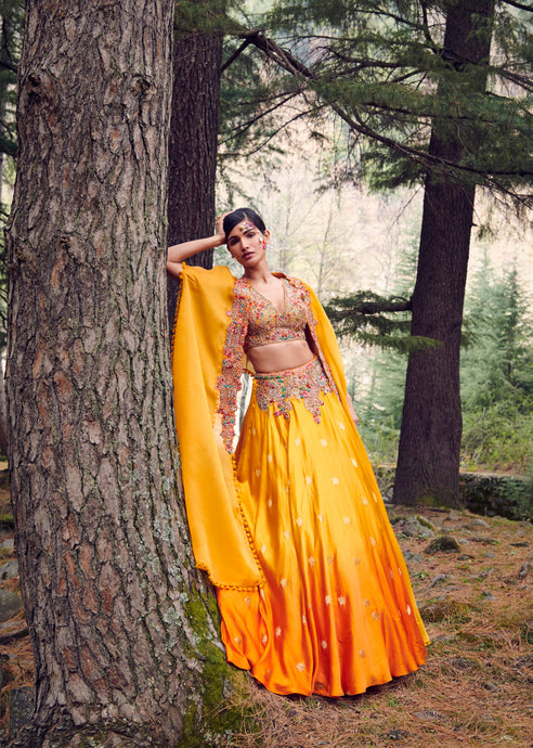 Honey Dew Organza Lehenga Set With A Cape