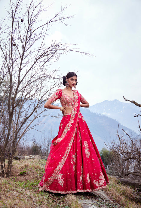 Prussion Raw Silk Lehenga Set