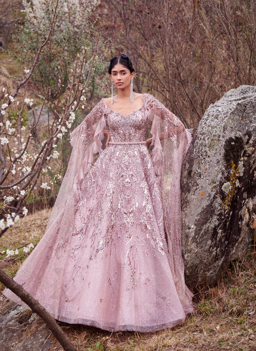 Pale Fuscaus Chiffon Lehenga Set