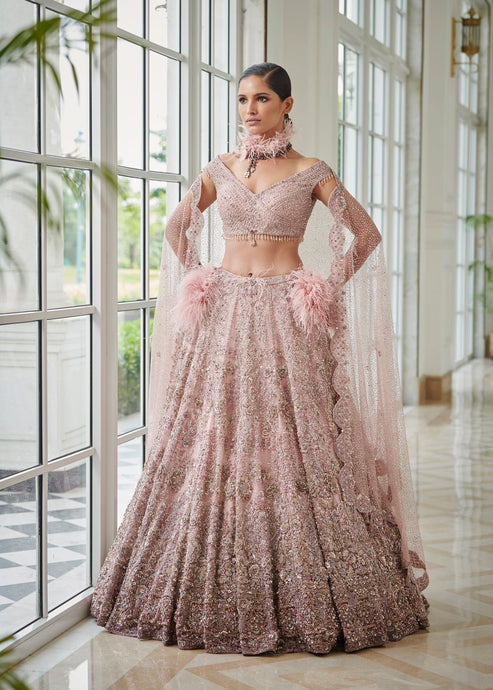 Elaine Blush Pink Shimmer Tulle Ombre Lehenga Set