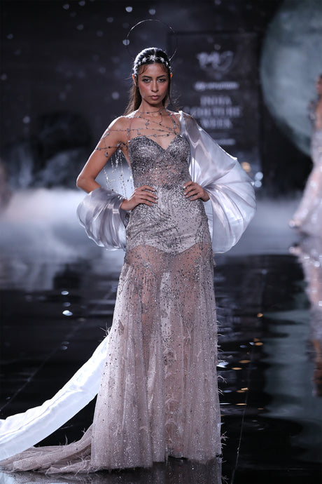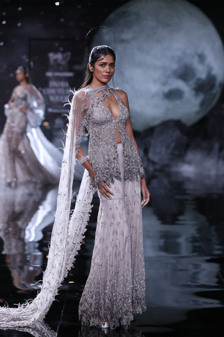 • Aphrodite Embroidered Skirt Paired With A Choli And A Trail Cape