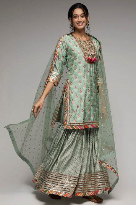 Gopi Vaid’s collection includes a wide range of everyday chic kurta and kaftan sets, dhotis, sarees, shararas and bridal lehengas.