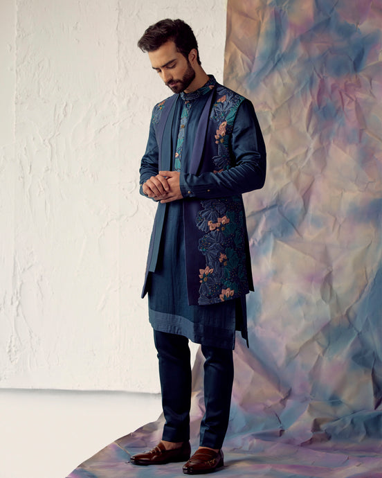 Midnight Blue Bandhgala set