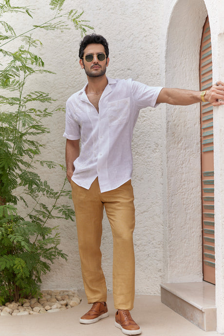 Mustard and Blue Tie-Dye Resham Embroidered Kurta