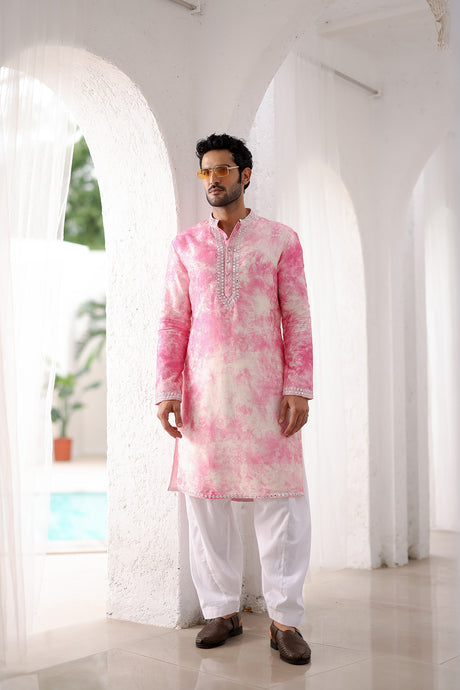 Pink Wine Tie-Dye Sequins Embroidery Kurta
