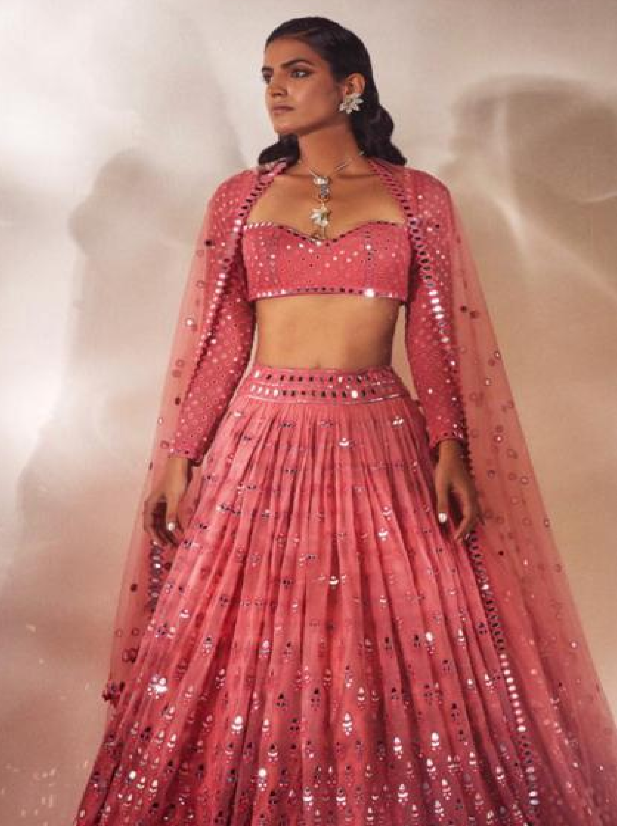 Ash Pink Pearl Drop Lehenga with high neck blouse