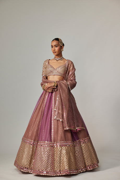MUD MAUVE MULTICOLOR LEHENGA WITH ELBOW SLEEVE BLOUSE
