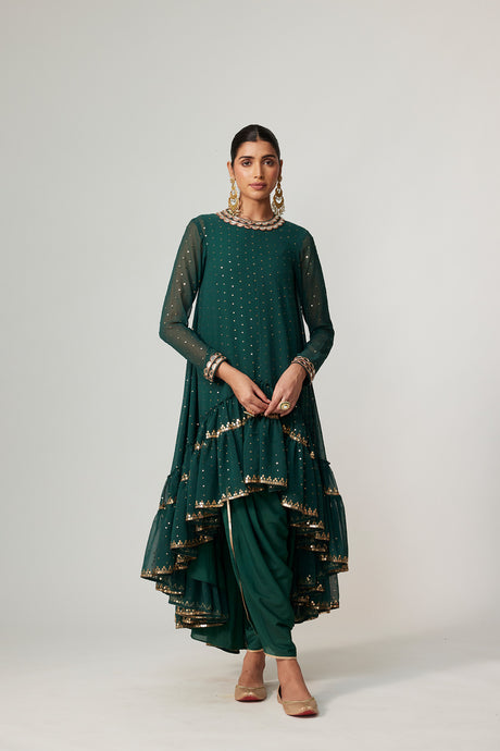 • JADE GREEN DHOTI KURTA WITH DUPATTA SET